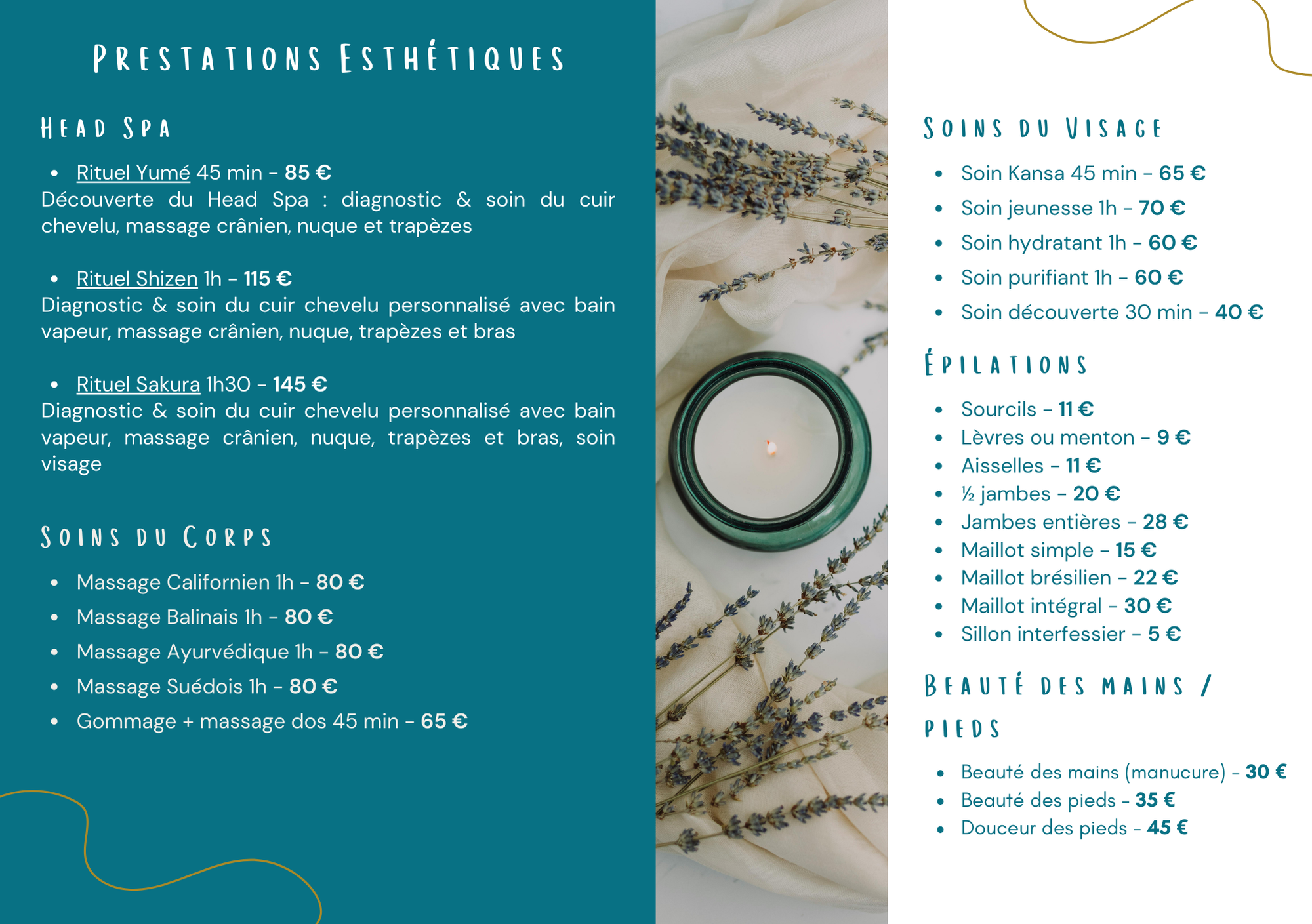 J’apporterai une attention particulière à votre visage et votre décolleté pour vous relaxer et traiter votre peau en fonction de ses besoins et de vos envies.